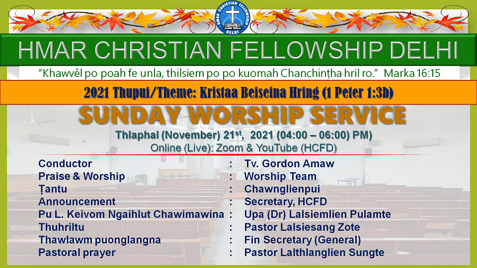Topic: Sunday Worship Service Time: Nov 21, 2021 04:00 PM India