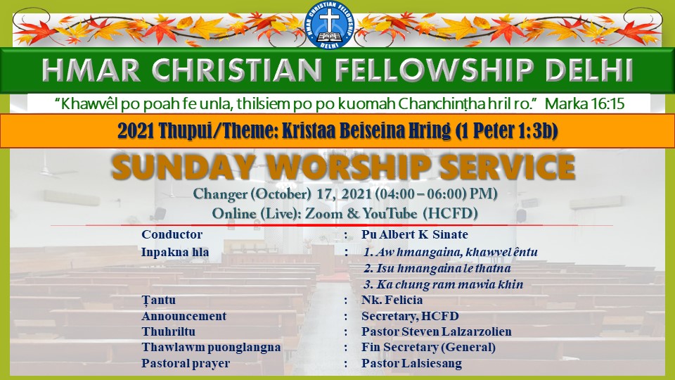 Topic: HCFD Sunday Worship Service Time: Oct 17, 2021 04:00 PM India