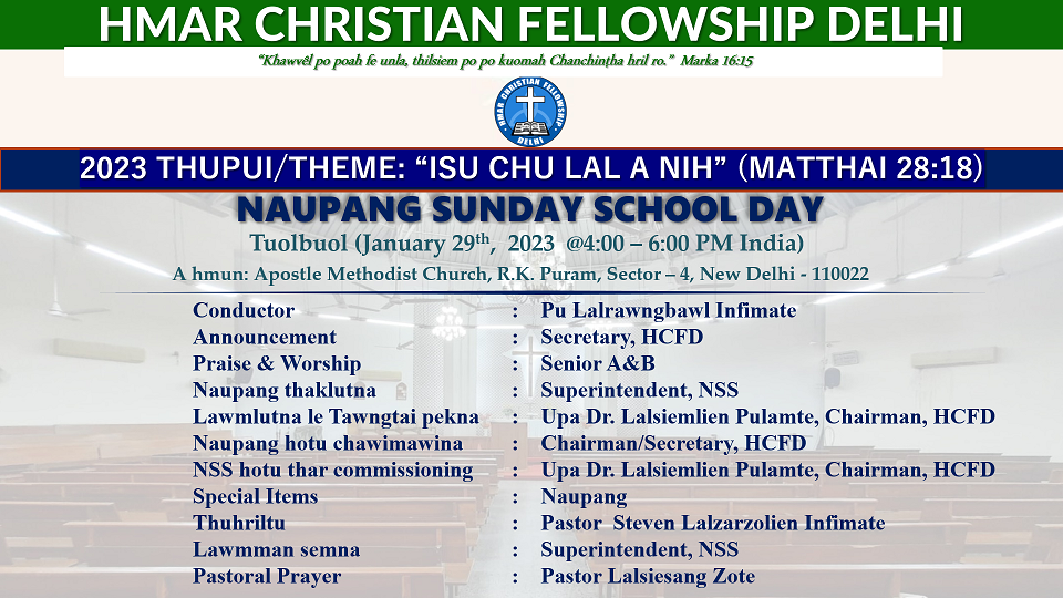 Naupang Sunday School Day (January 29, 2023 @4:00 PM India)