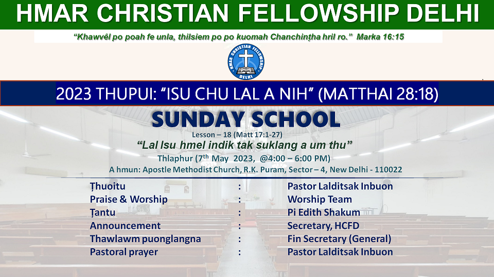 Sunday School Lesson – 18 “Lal Isu hmel indik tak suklang a um thu” Matt 17:1-27