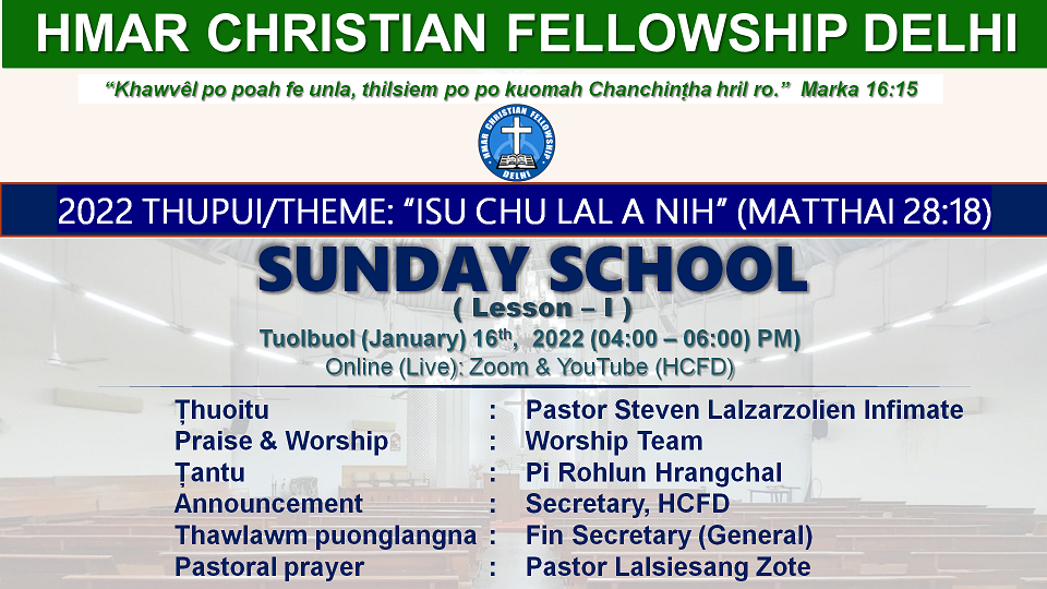 Topic: HCFD Sunday School (Lesson – I) Time: Jan 16, 2022 04:00 PM India