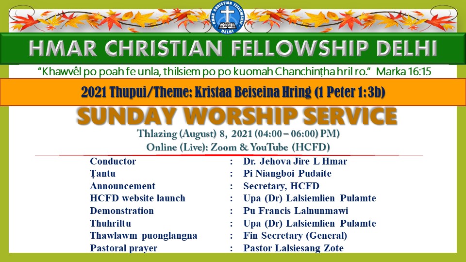 Topic: HCFD Sunday Service Time: Aug 8, 2021 04:00 PM India