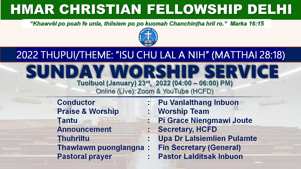 Topic: Sunday Worship Service Time: Jan 23, 2022 04:00 PM India