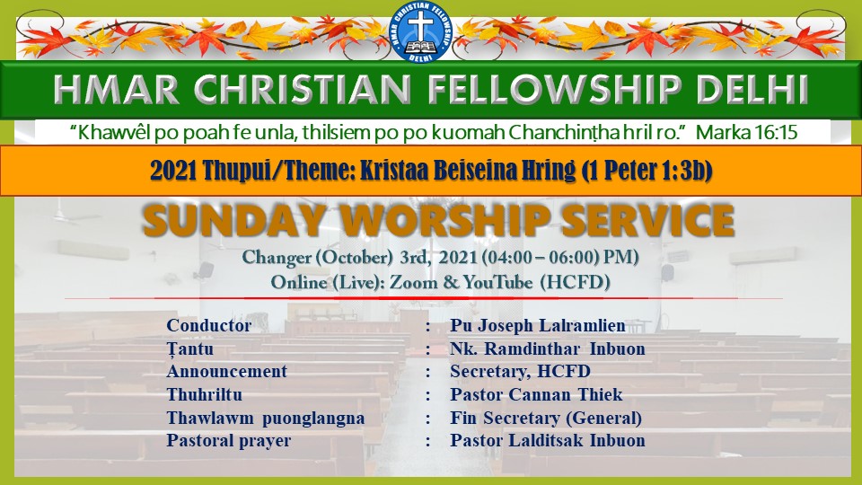 Topic: Sunday Worship Service Time: Oct 3, 2021 04:00 PM India