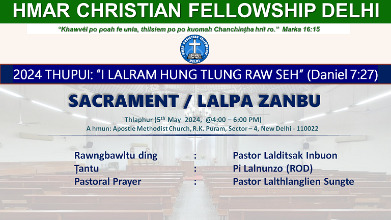 Lalpa zanbu ( Sacrament) Rawngbawltu ding: Pastor Lalditsak Inbuon Tantu: Pi Lalnunzo (ROD) Pastoral Prayer: Pastor Lalthlanglien Sungte