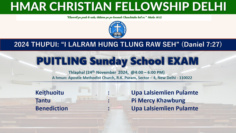 Puitling SS exam Keiṭhuoitu: Upa Lalsiemlien Pulamte Tantu: Pi Mercy Khobung Benediction: Upa Lalsiemlien Pulamte